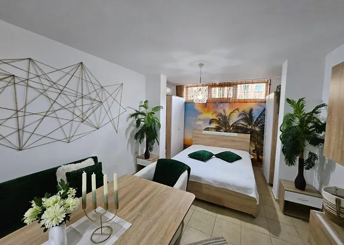- ❓What popular landmarks are located close to Tropical Chic For Two, Basement Studio Escape By Flat Mаnager?Guests can consider visiting Aureliya, located 0.6 km away from Tropical Chic For Two, Basement Studio Escape By Flat Mаnager. Other sights include Old Nessebar (3.3 km) and Nesebar South Beach (2.5 km).
